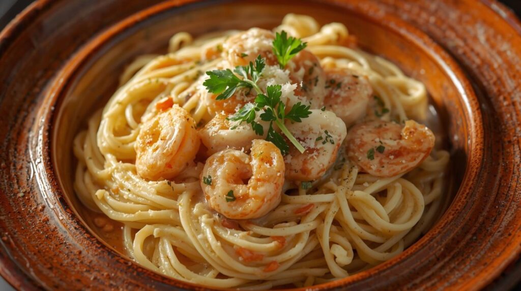 Shrimp CarbonaraSautéed shrimp and bacon tossed with spaghetti in a rich creamy sauce.
